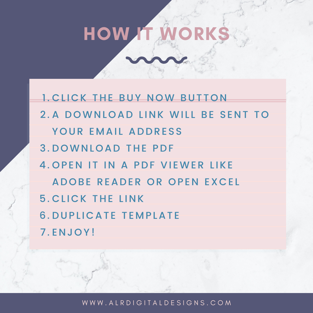 Once purchased you will receive a PDF with clickable links to Notion. From there you will select duplicate at the top right of the page (two overlapping squares) and it will be copied to your Notion account.